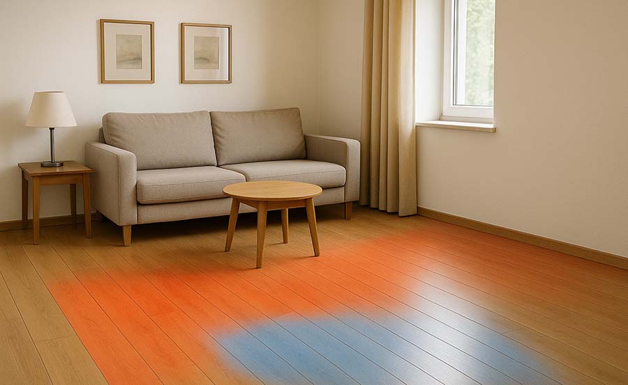 Prvi znak su neravnomerno zagrejane zone na podu. Umesto da pod bude ujednačeno topao, javljaju se hladnije trake ili površine koje nikako ne dostižu željenu temperaturu.