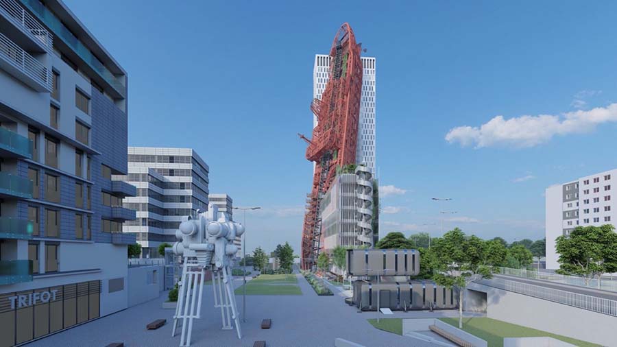 Top Tower u Pragu postaće najviša zgrada u Češkoj, visoka 135 metara, sa upečatljivom skulpturom brodoloma Davida Černog koja probija fasadu. Projekat kombinuje stanove, kancelarije, kulturne sadržaje i javne prostore, a istovremeno donosi održiva rešenja i snažnu ekološku poruku