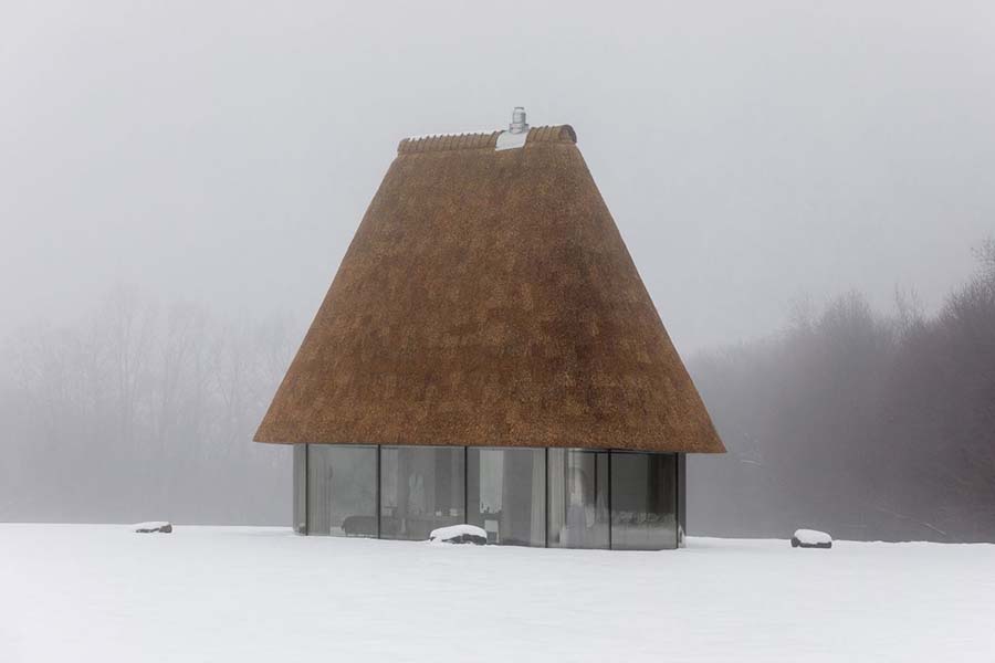 Zahvaljujući velikim staklenim površinama, granica između enterijera i prirode gotovo da ne postoji – pejzaž postaje deo svakodnevnog života, a svetlost tokom dana neprestano menja atmosferu prostora. Kuća izgleda kao da je izrasla iz zemlje, nenametljivo se uklapajući u ravnicu koja je okružuje.