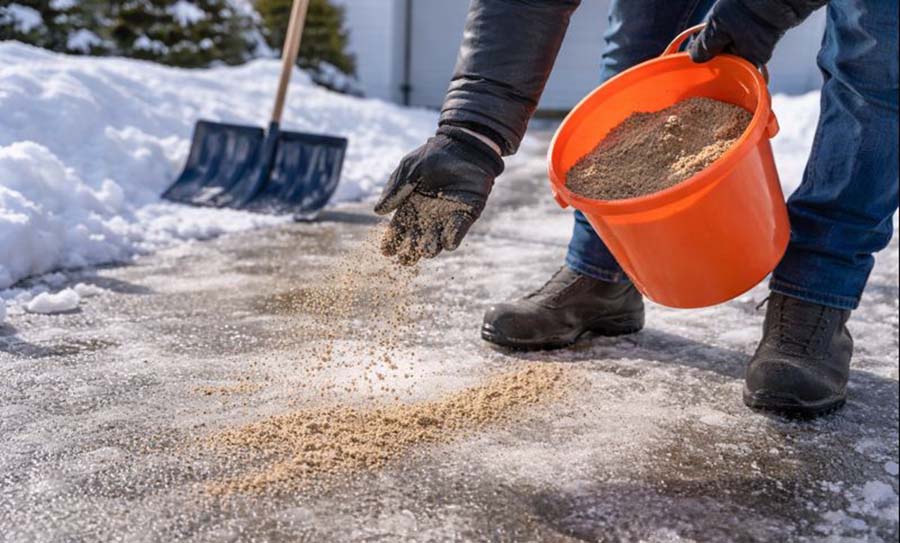 Pesak ne topi led, ali stvara prijanjanje i omogućava sigurniji korak čak i kada je površina potpuno zaleđena. Najbolje se koristi kada je led već formiran, a vama je potrebno brzo i efikasno rešenje koje možete odmah da primenite.