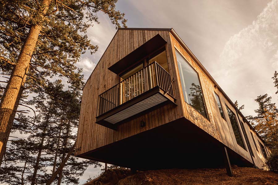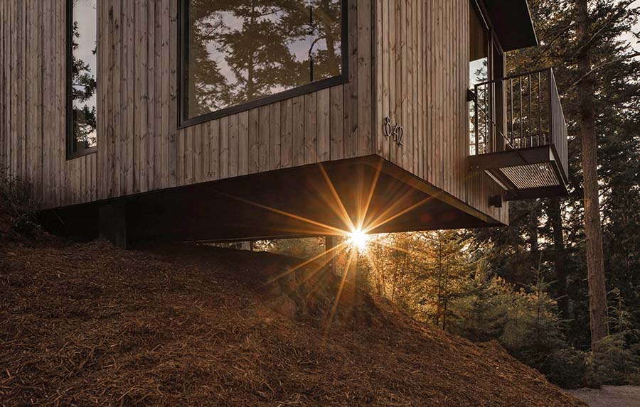 Kreacija studija Allied 8 demonstrira kako se pravi spoj pejzaža i savremene arhitkture u skladu celinu, uz minimalan uticaj na prirodnu sredinu. Vizuelno se ova brvnara uklapa u šumski ambijent, ali pruža svetao luksuzan enterijer