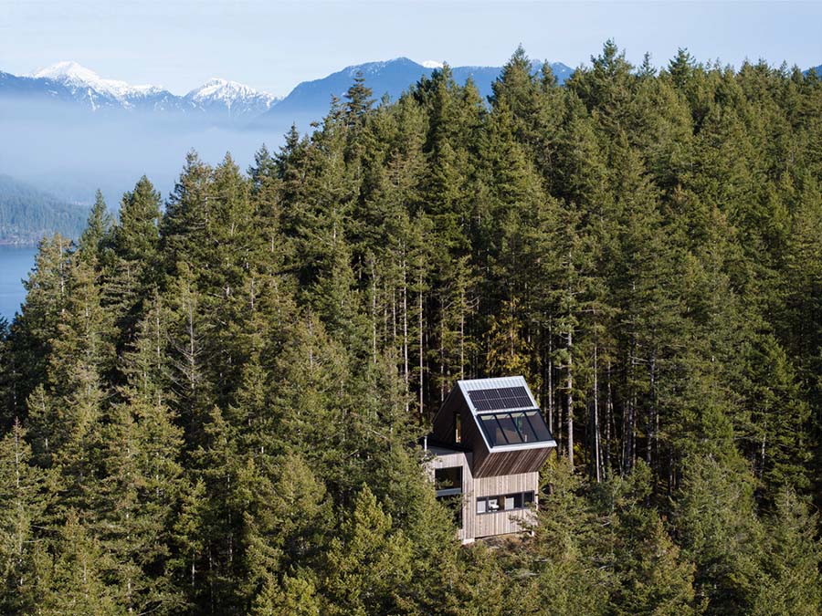 Na prvi pogled, kuća izgleda kao da izranja iz drveća, gotovo neprimetno uklopljena u pejzaž. Izgrađena od prefabrikovanih drvenih panela, koji su na ostrvo stigli helikopterom, kuća je postavljena na nepristupačnom terenu u samo dva dana.