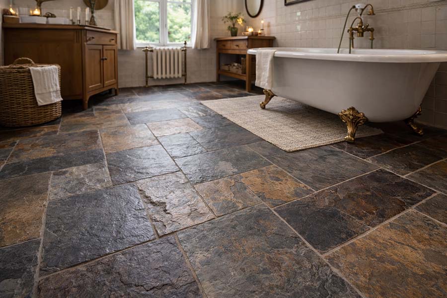 Škriljac se ređe viđa u klasičnim dnevnim prostorima, ali je veoma zanimljiv izbor za hodnike, kupatila ili rustične enterijere. Njegova prirodno hrapava površina daje prostoru karakter i smanjuje klizanje, što je prednost u prostorima gde se hoda mokrim stopalima.