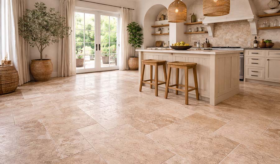 Travertin je kamen koji se često bira kada se želi prirodan, mediteranski ili rustičan izgled enterijera. Njegova površina ima karakteristične pore i šupljine, što mu daje topliji i mekši vizuelni utisak u odnosu na mermer ili granit.