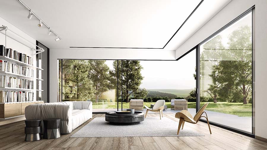 Sistem je osmišljen tako da aluminijumski profili budu gotovo neprimetni, naglašavajući otvorenost i povezanost unutrašnjeg prostora sa spoljašnjim okruženjem.