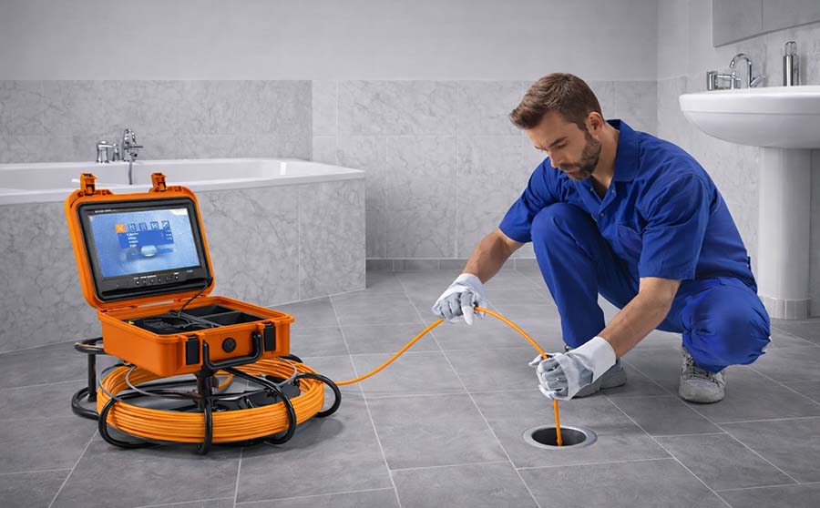 Za pregled instalacije koristi se specijalna fleksibilna kamera koja se ubacuje u cev. Kamera je povezana sa monitorom na kojem majstor u realnom vremenu vidi unutrašnjost cevi. Na taj način mogu da se uoče pukotine, korozija, zapušenja, taloženje kamenca ili deformacije cevi.