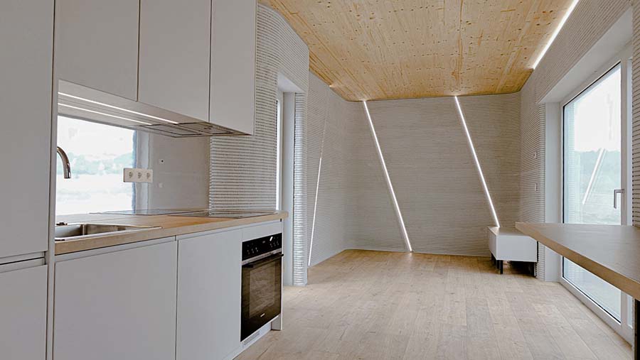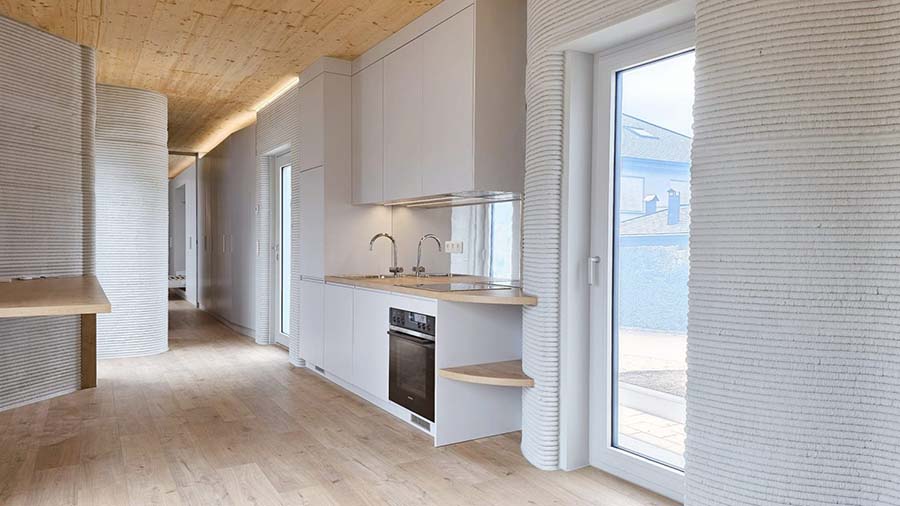 Kuća je izgrađena 3D štampom betona, tehnologijom koja omogućava brzo podizanje konstrukcije uz minimalnu potrošnju materijala. Mobilni 3D printer je direktno na terenu formirao slojeve specijalne cementne smeše, a osnovna struktura bila je gotova za svega nedelju dana.