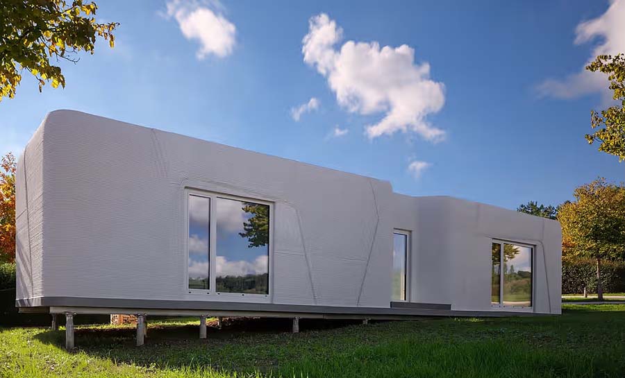 Kuća je izgrađena 3D štampom betona, tehnologijom koja omogućava brzo podizanje konstrukcije uz minimalnu potrošnju materijala. Mobilni 3D printer je direktno na terenu formirao slojeve specijalne cementne smeše, a osnovna struktura bila je gotova za svega nedelju dana.